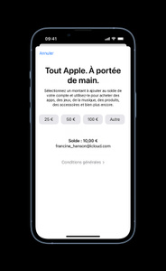 Créditez à tout moment le solde de votre compte Apple, sans carte cadeau. Vous intervenez directement depuis votre appareil et c’est rapide, sûr et simple.
