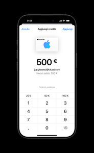 Versa denaro sul saldo del tuo account Apple quando vuoi: non serve una carta regalo. È facile, veloce e sicuro e puoi farlo direttamente dal tuo dispositivo.